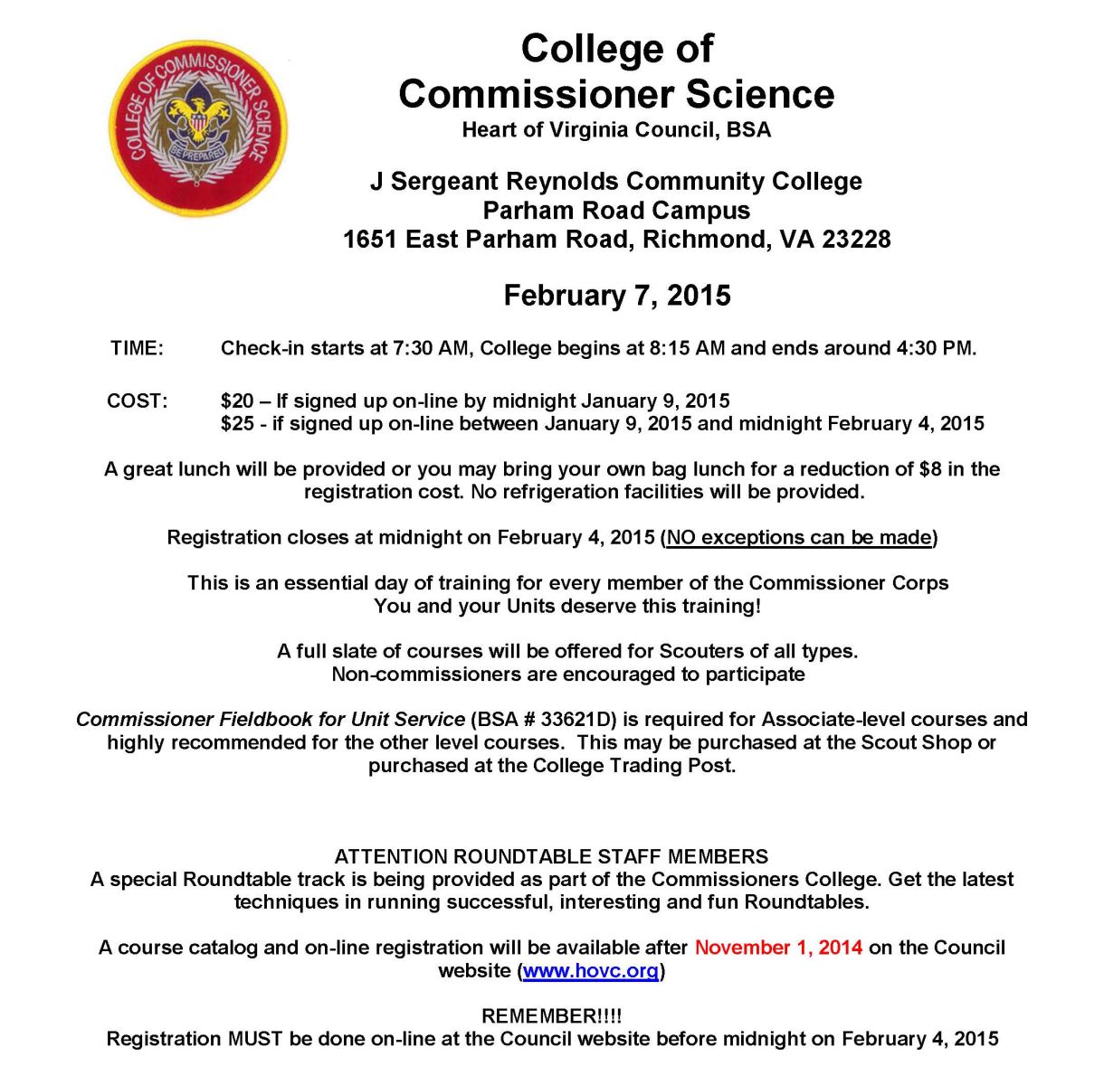 To ensure your space, please complete your registration online at   http://scoutingvirginia.doubleknot.com/event/1603263 by January 15, 2015